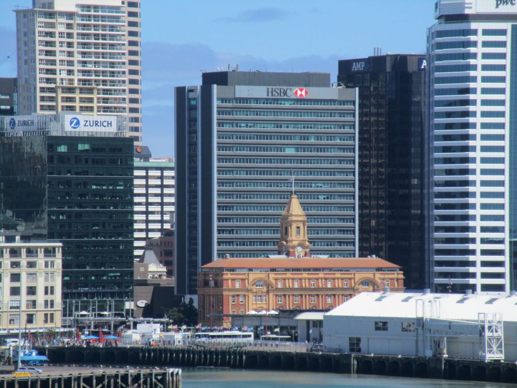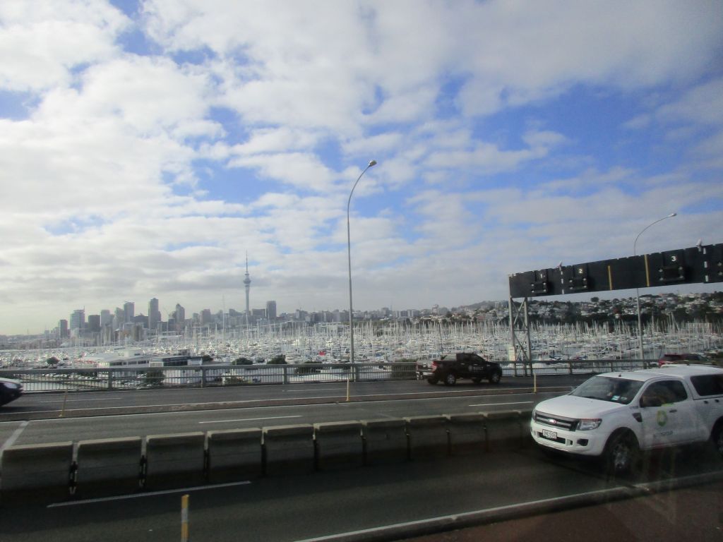 Nach fünf Tagen auf See – eigentlich sind es nur vier Tage, da der 5.3.2016, der 60te Tag der Weltreise nicht stattfindet, da wir die Datumsgrenze an diesem Tag überschritten haben und direkt auf den 6.3.2016 gesprungen sind – kommen wir um 9:00 in Auckland an, die Anlegestelle befindet sich mitten im Stadtzentrum.