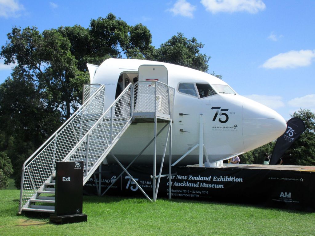 Außerhalb, beim Ausgang des Museums ist das Cockpit einer Boing 737 aus dem Jahr 1995 aufgebaut, die wir uns ebenfalls anschauen.
