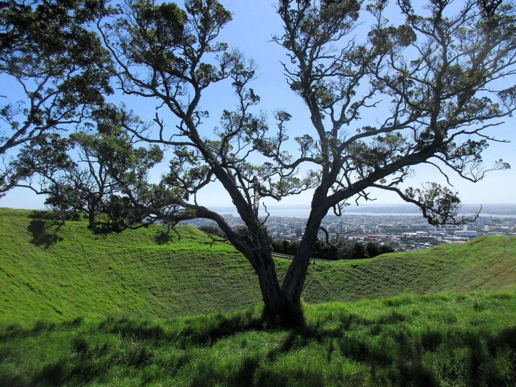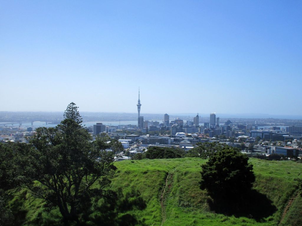 Als wir das Museumspersonal nach dem Weg zum Mount Eden fragen, bietet uns eine Frau an, uns mit dem Auto hinzufahren. Wir nehmen an und fahren los. Im Linksverkehr.