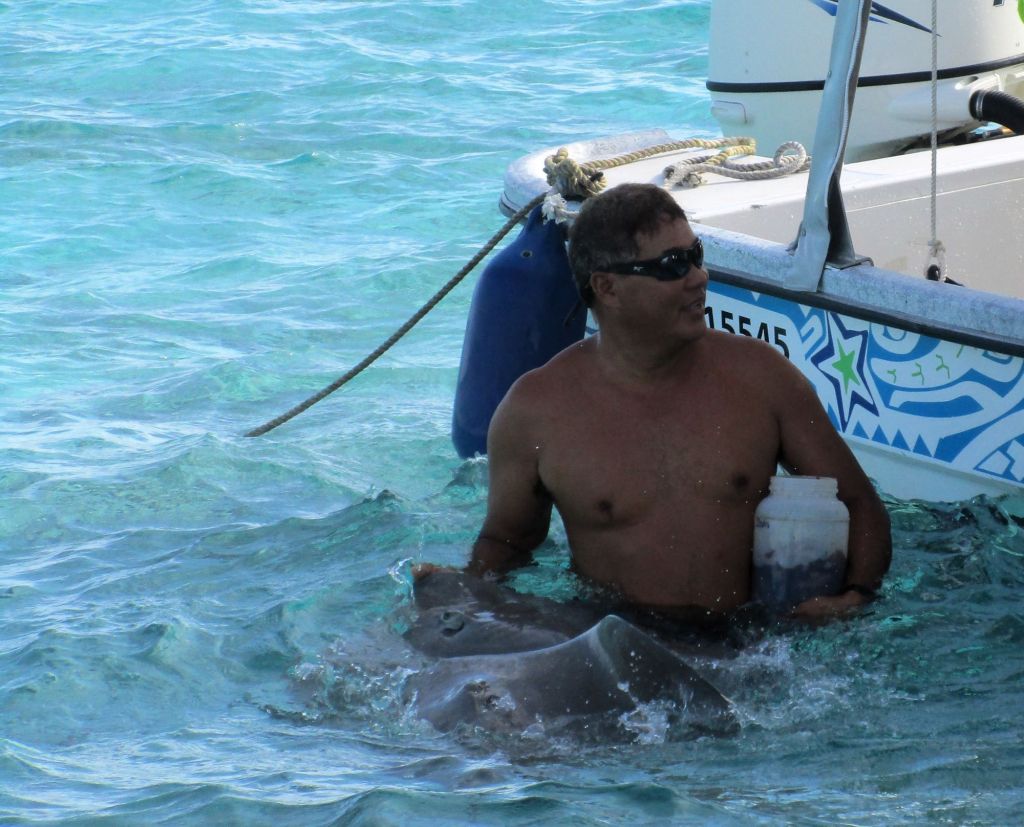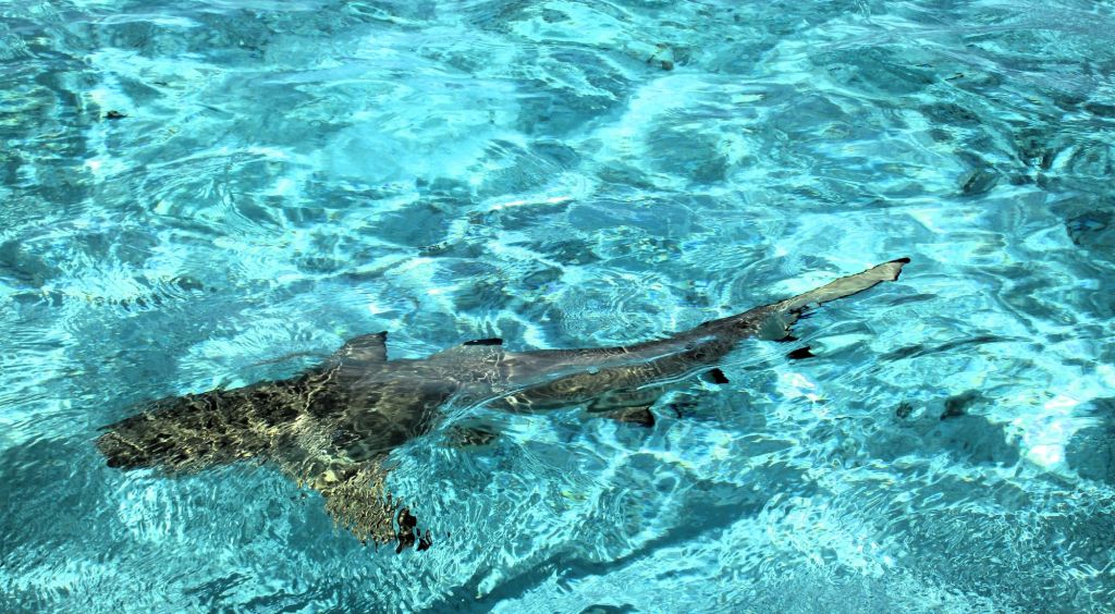 Beim dritten Stop, der wie beim ersten Halt nur ca. ein Meter tief ist, gibt es wiederum Haie und Rochen. Hier kann man mitten in einem Schwarm von 20 – 30 Haien tauchen. Stachelrochen mit langen Schwänzen schweben an einen vorbei. Ein unglaubliches Erlebnis.