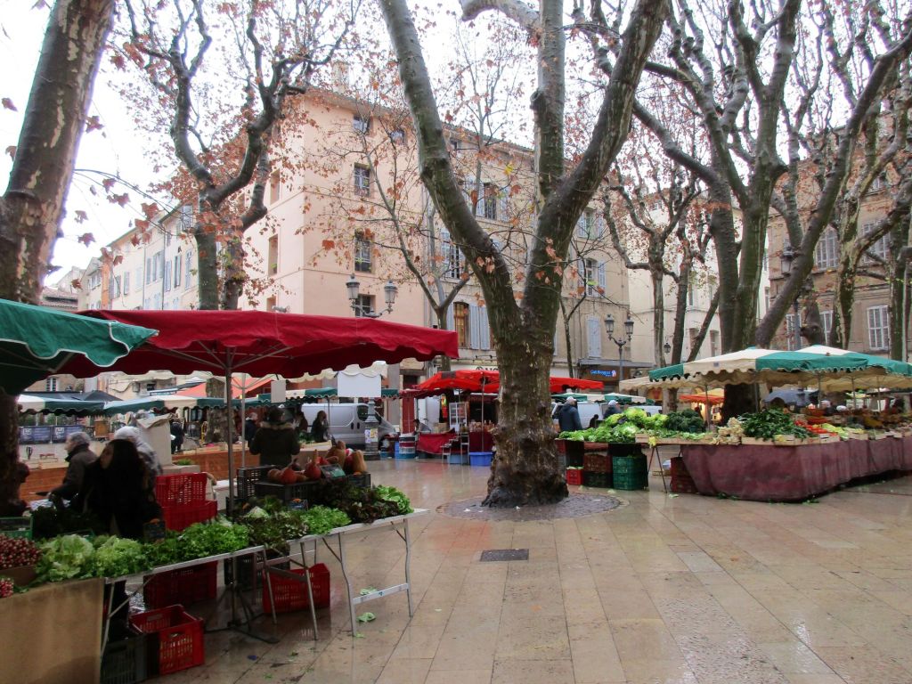 Der Künstler Cezanne ist hier geboren, leider können wir den Berg Mont Sainte-Victoire, den er 87 mal in verschiedensten Farben gemalt nicht sehen, weil es leicht regnet und bewölkt ist