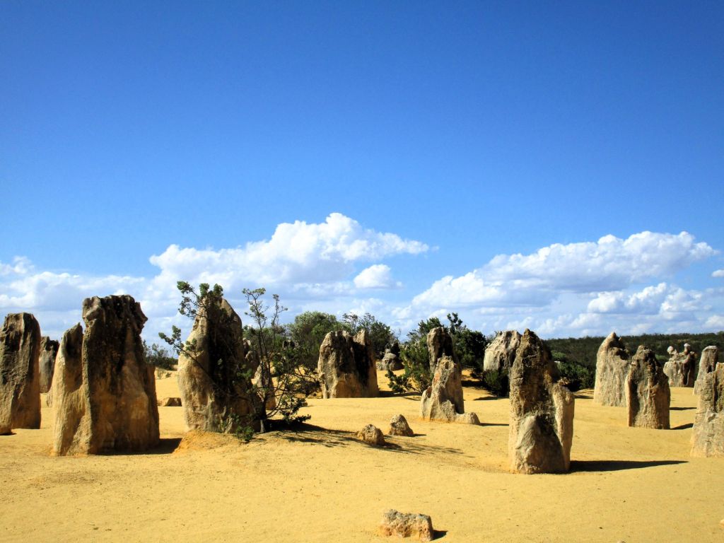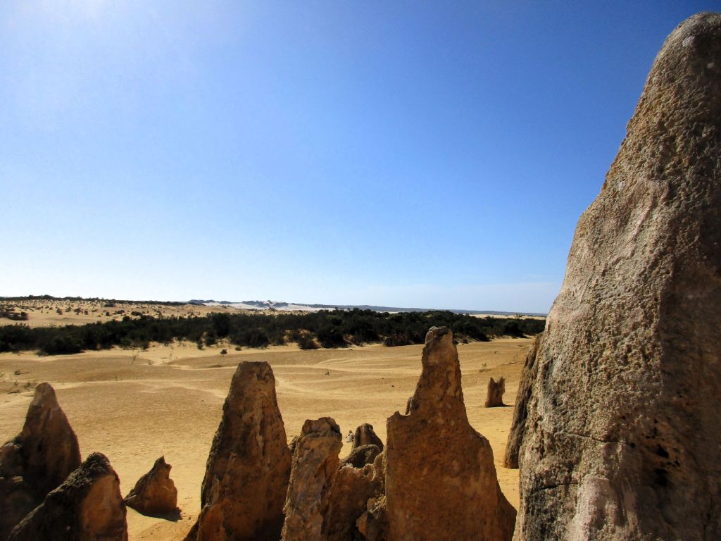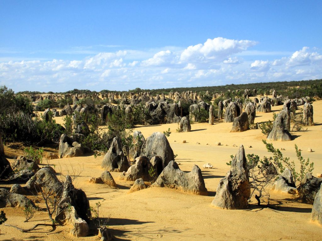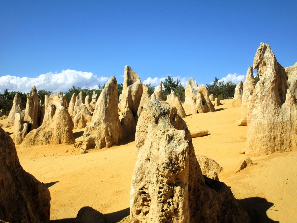 Das Pinnacles Desert ist bekannt für seine bis zu vier Meter hohen Kalksteinsäulen, die aus dem Sandboden ragen. Die Pinnacles sind vor etwa 25 Millionen Jahren entstanden, als sich Kalksteinablagerungen durch Erosion und Wind zu den charakteristischen Säulen formten.