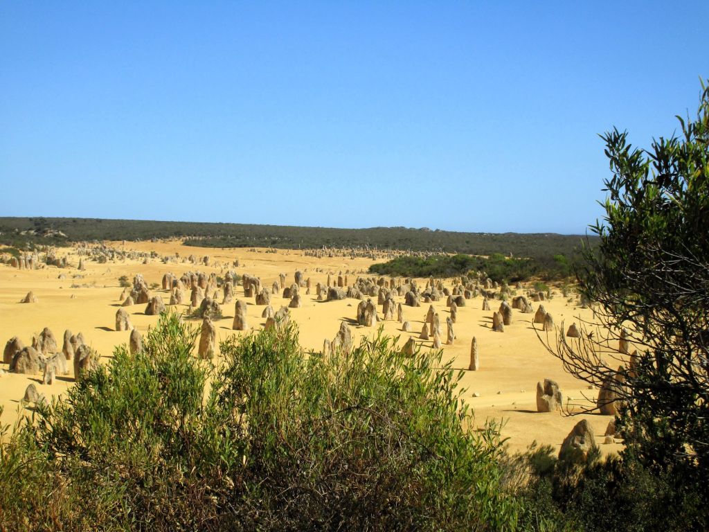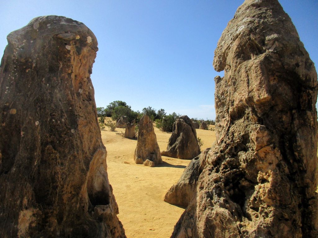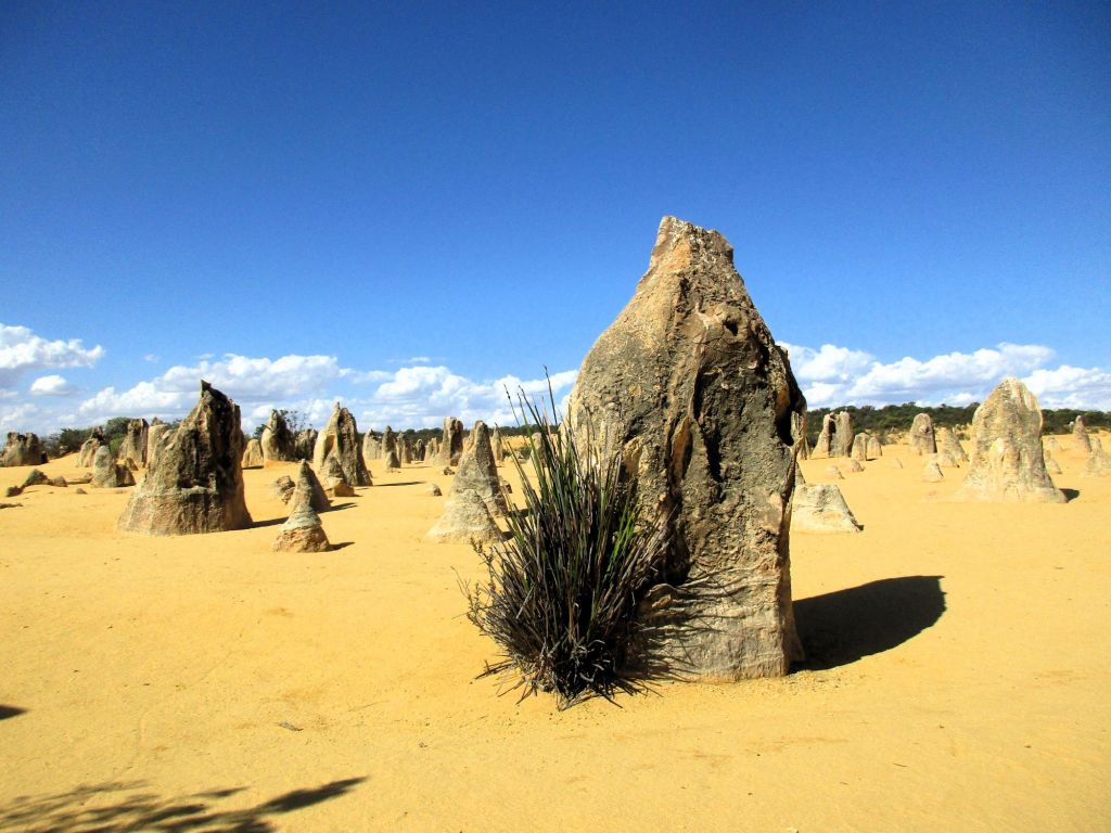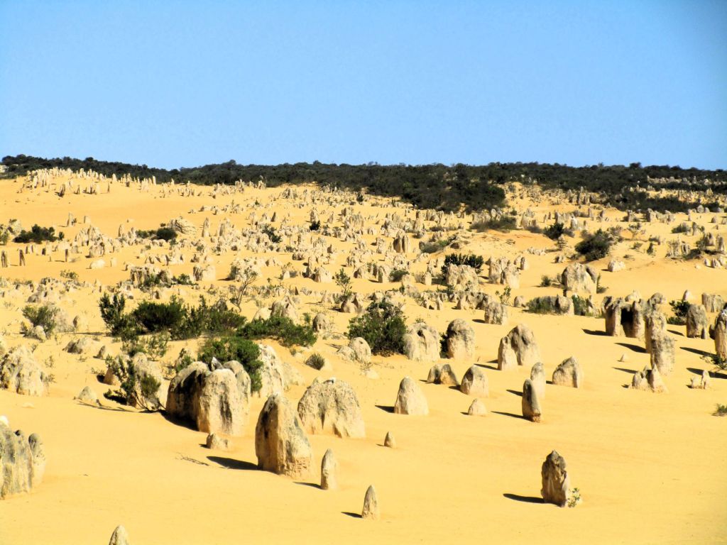 Das Pinnacles Desert ist bekannt für seine bis zu vier Meter hohen Kalksteinsäulen, die aus dem Sandboden ragen. Die Pinnacles sind vor etwa 25 Millionen Jahren entstanden, als sich Kalksteinablagerungen durch Erosion und Wind zu den charakteristischen Säulen formten.