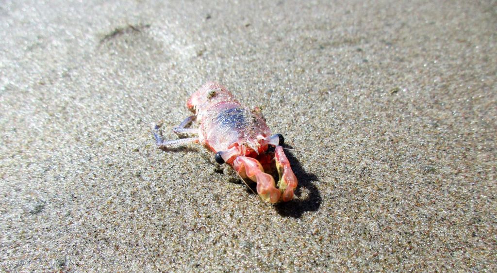 10:30 – 14:30 Wir entscheiden uns gegen einen organisierten Ausflug mit Schiff oder Bus und machen einen langen Strandspaziergang bis zur Punta Cuevas und besichtigen die Höhlen der ersten walisischen Siedler, die mit der „Mimosa“ 1865 hier gelandet sind, das Indianerdenkmal für die Tehuelche-Indianer und das Ecocentro Right Whale (Eintritt 125 AR$ ca. 8 €, ein Museum in dem die Tier- und Pflanzenwelt der Gegend teilweise auch multimedial ausgestellt wird. Hier lernen wir viel über Südpoler-Wale und Orcas, die man hier in Küstennähe in den Sommermonaten beobachten kann. Unterwegs am Strand haben wir jede Menge Krill, kleine krabbenähnliche Tiere, die zur Hauptspeise der Südpoler-Wale gehören, gesehen.