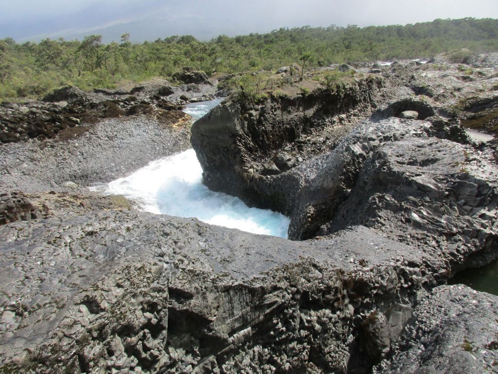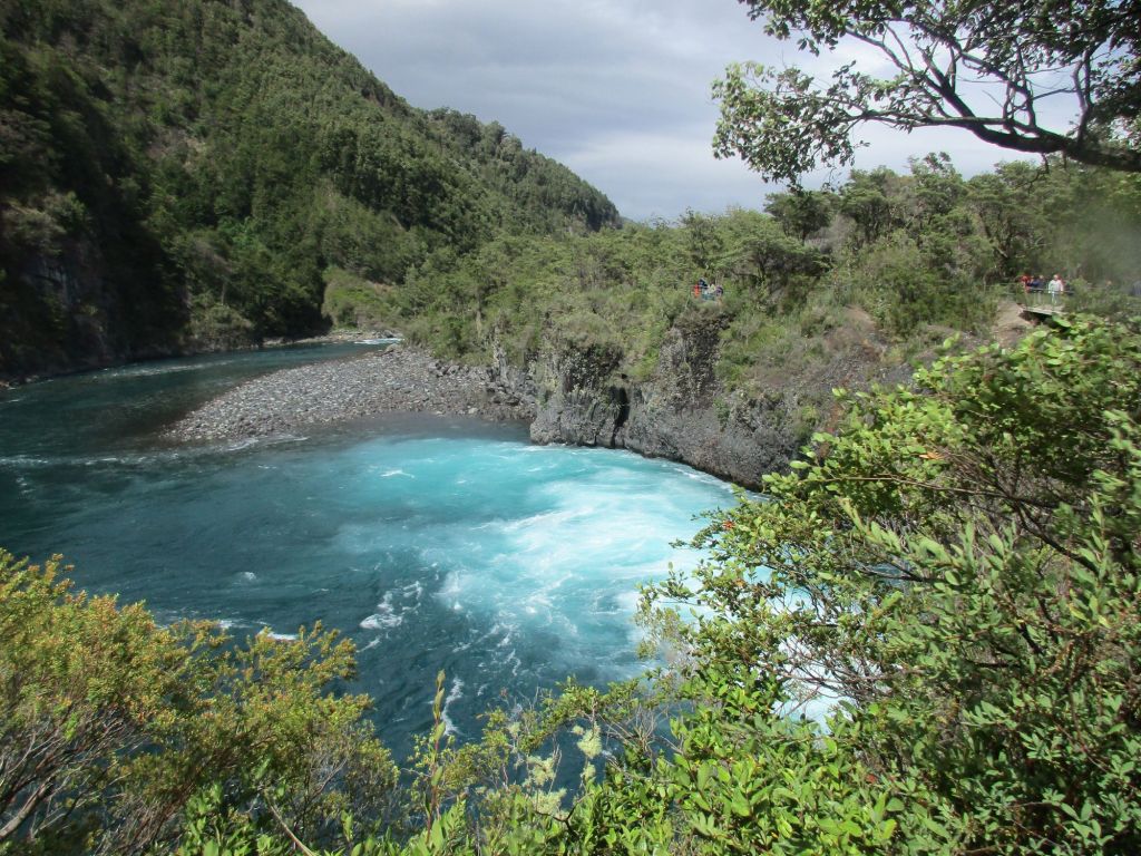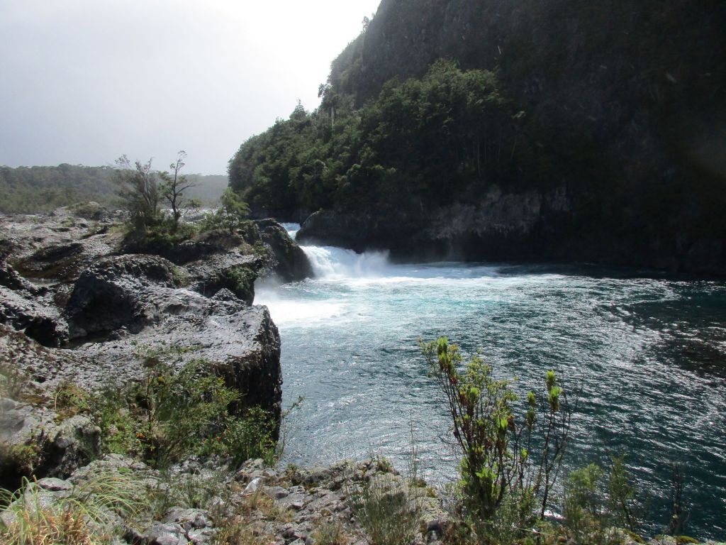 Danach geht es weiter zu den Petruhue Wasserfällen, die durch den Vulkanausbruch des Osorno entstanden sind. Der Fluss Petrohue bahnt sich seinen Weg durch den Basaltstein, sehr beeindruckendes Ambiente.