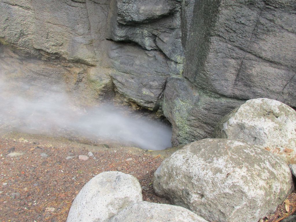 Wir fahren zum Arahoho Blowhole, wo ein Loch in einer Felsengrotte bei stürmischer See Wasserdampffontänen ausstößt. Es erinnert an das Atmen eines Wales.