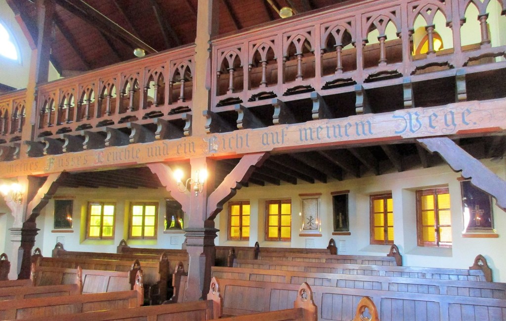 Die Kirche ist eine neogotische Holzkirche mit einem hohen Turm. Das Innere der Kirche ist einfach gehalten, aber sehr elegant. Der Altarraum ist mit einem Kreuz und einigen Blumen geschmückt. Auf dem Altar befindet sich eine Bibel und ein Leuchter.